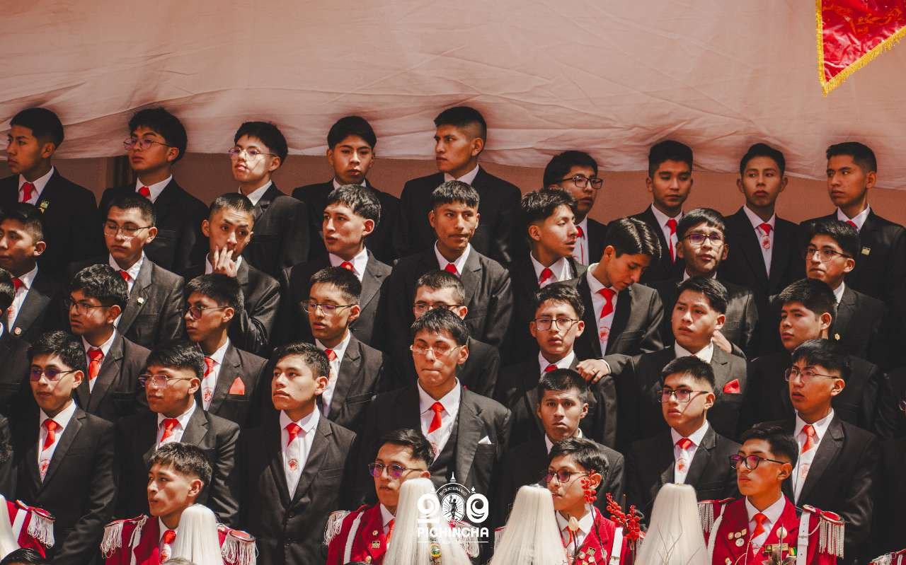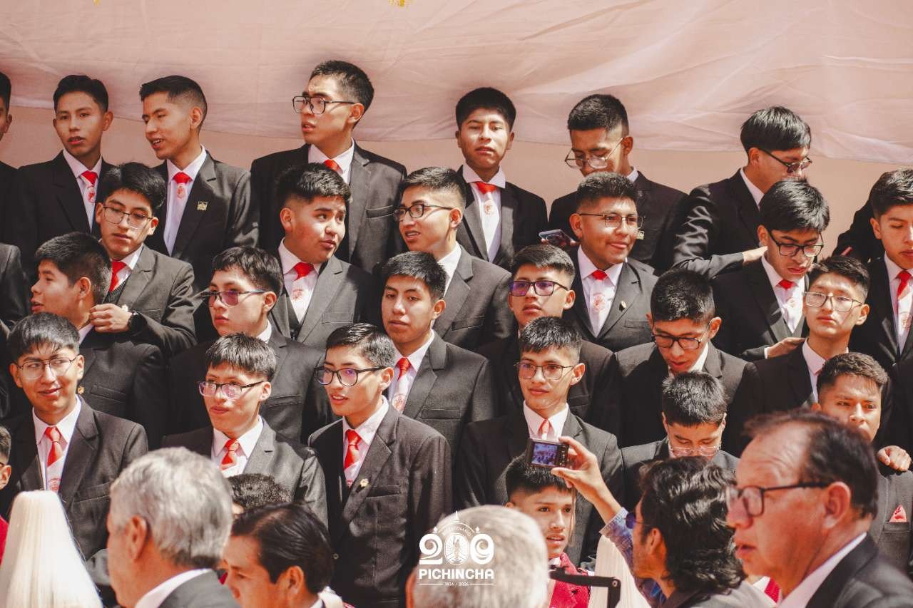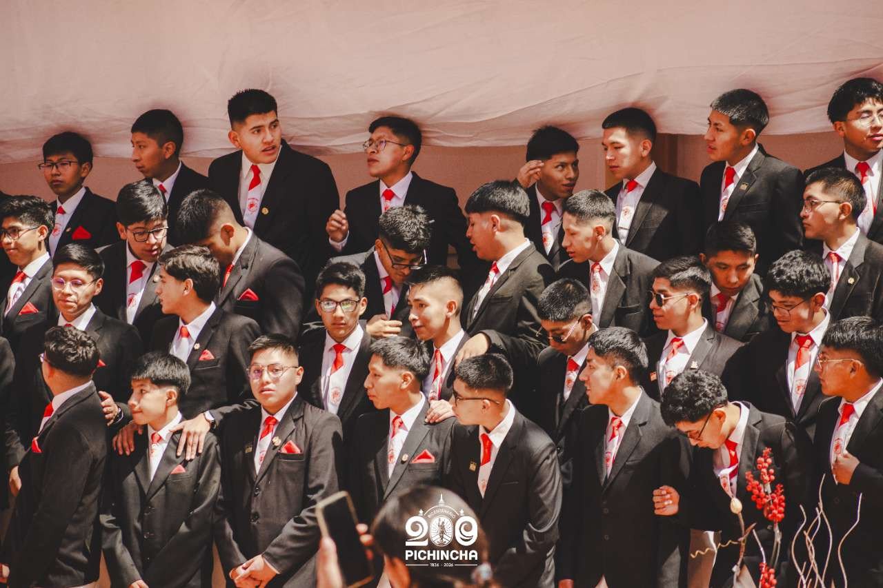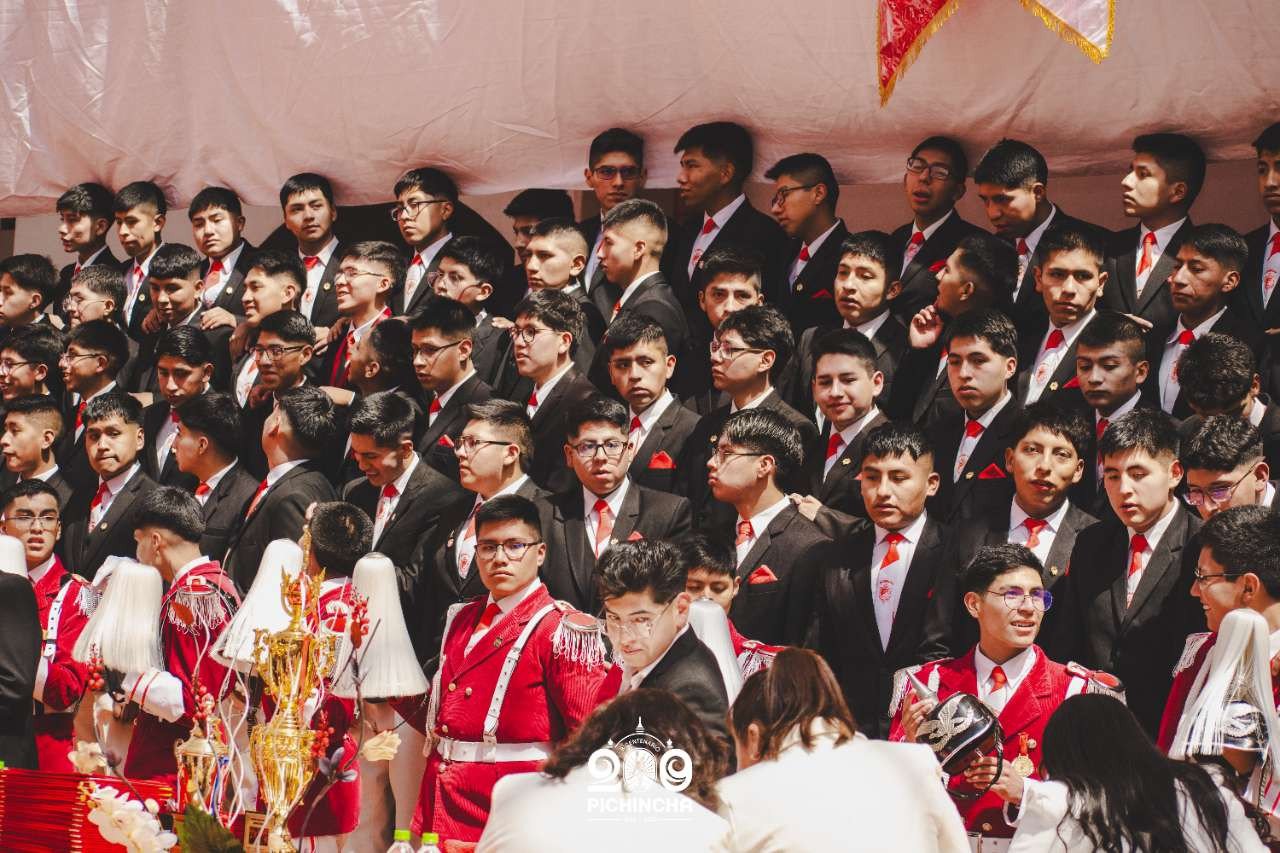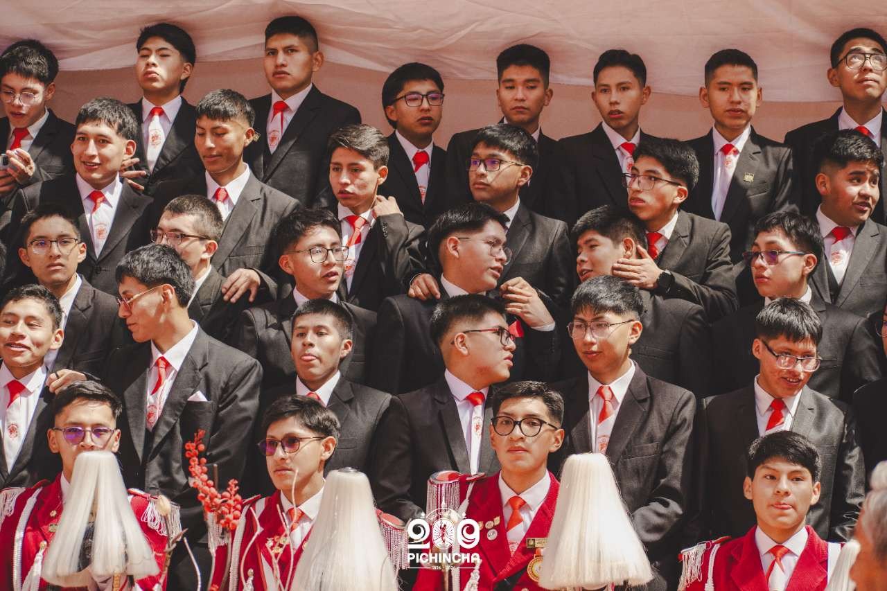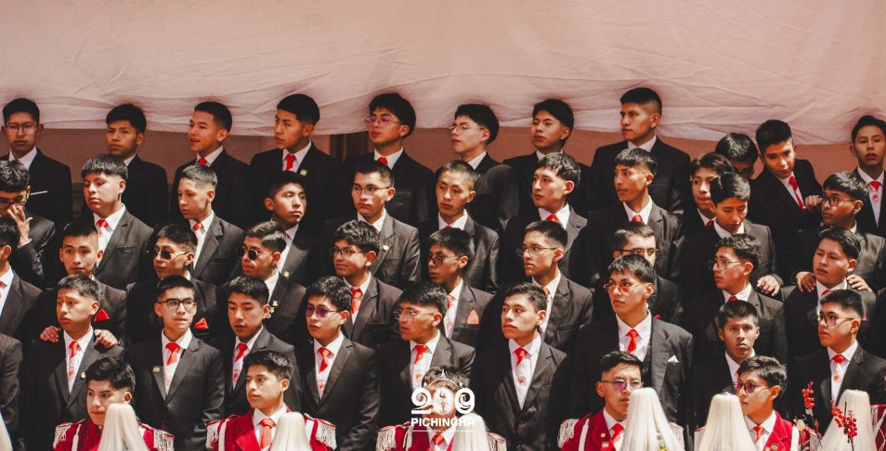 El Colegio Nacional Pichincha presenta las im谩genes de una jornada hist贸rica. Una nueva generaci贸n de bachilleres parte llevando el rojo y blanco y el lema "Constancia y Trabajo" en el coraz贸n.