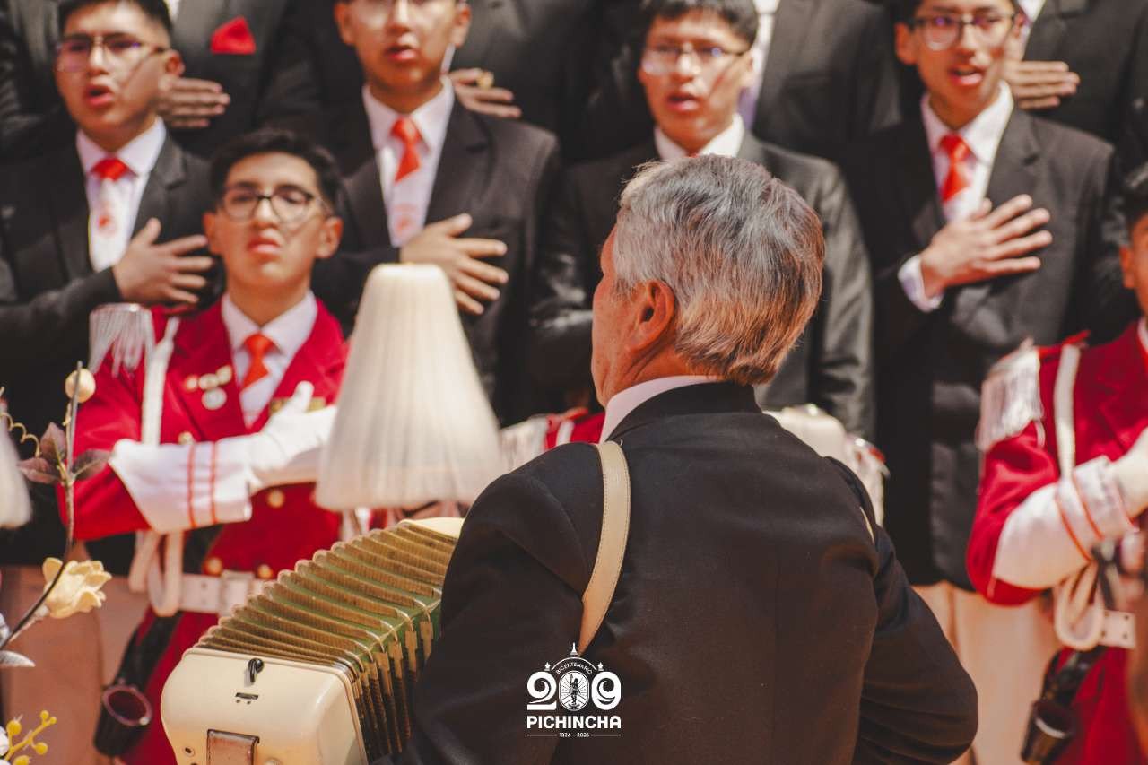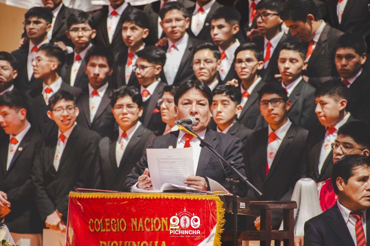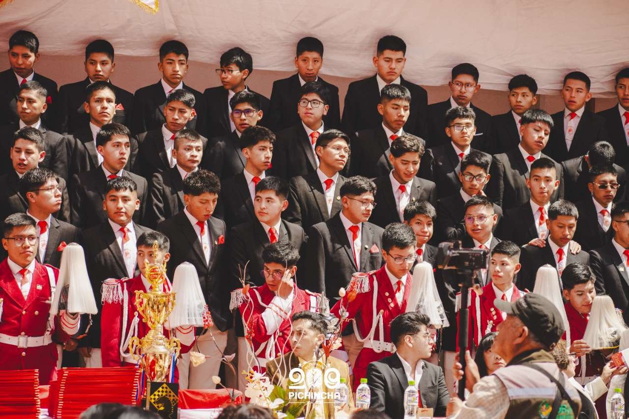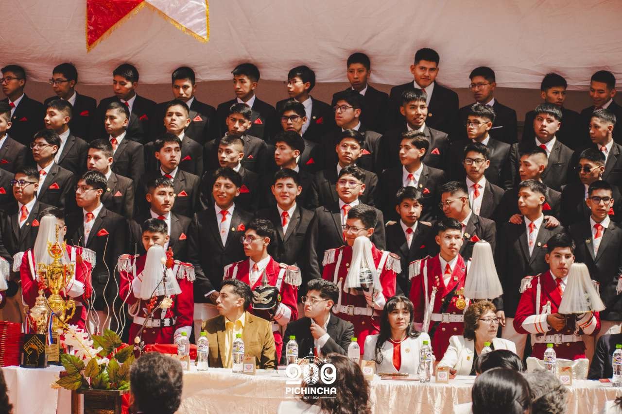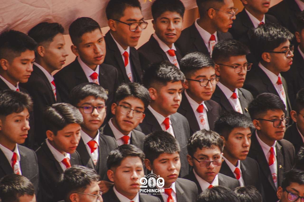 El Colegio Nacional Pichincha presenta las im谩genes de una jornada hist贸rica. Una nueva generaci贸n de bachilleres parte llevando el rojo y blanco y el lema "Constancia y Trabajo" en el coraz贸n.