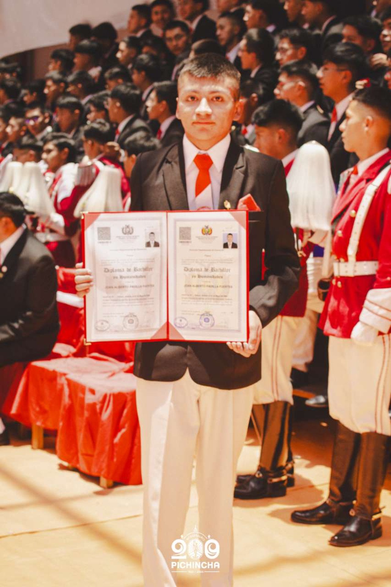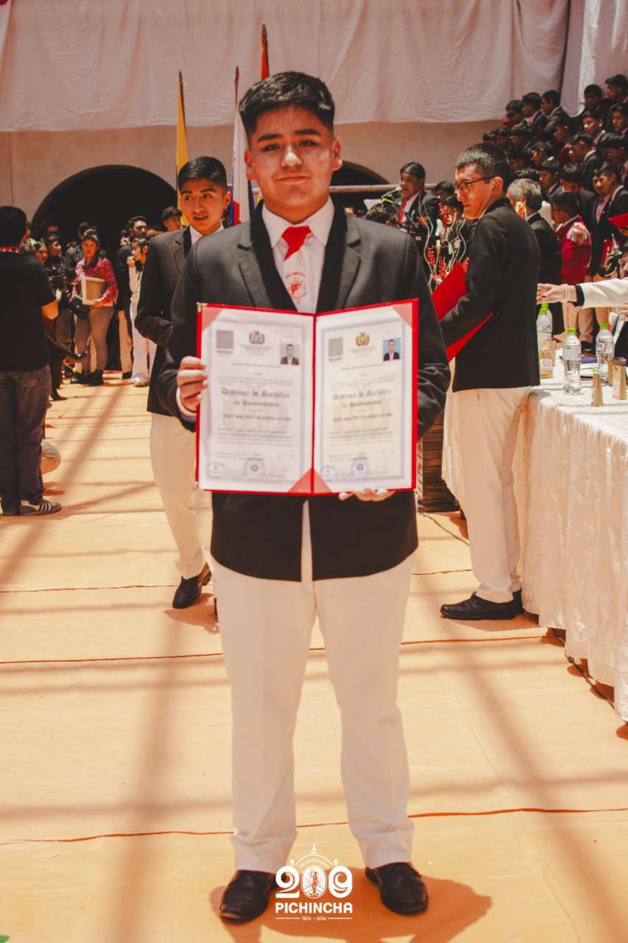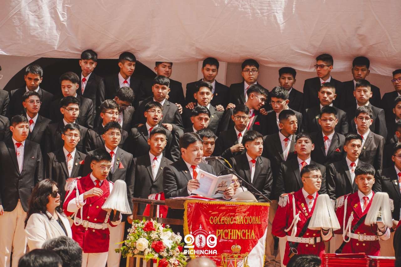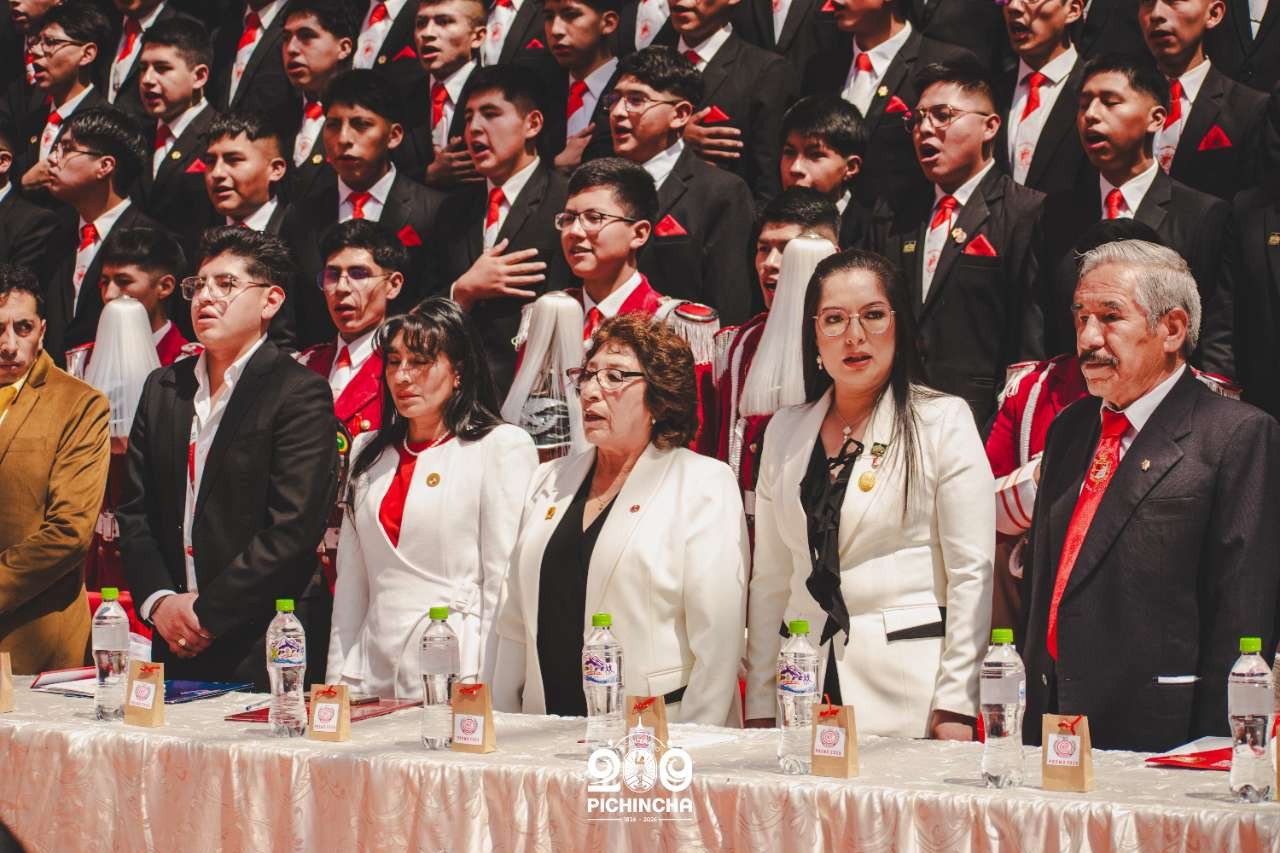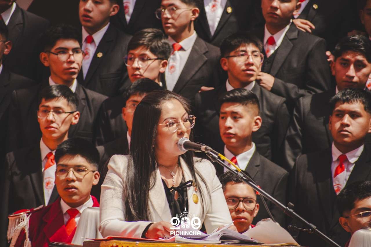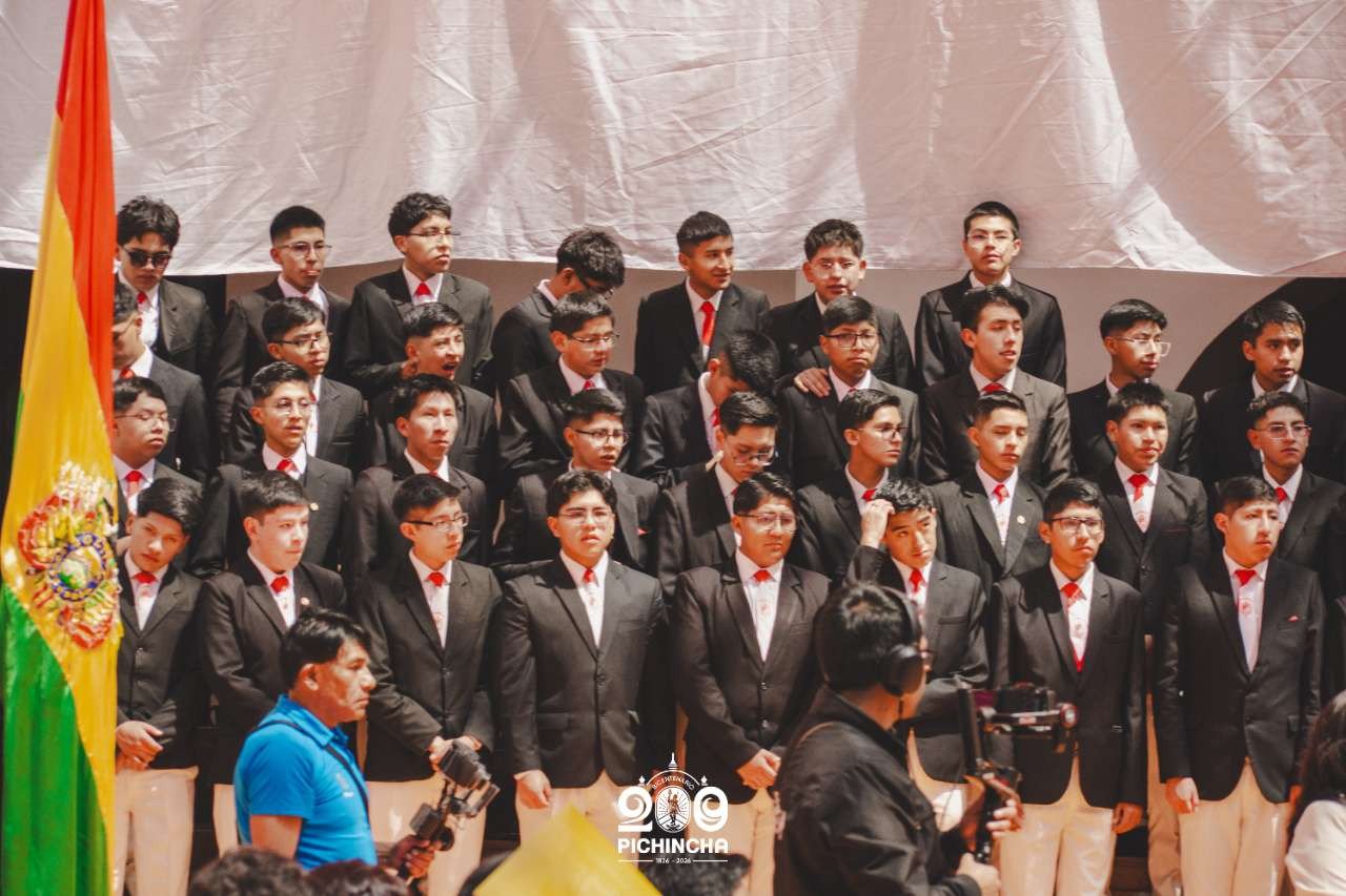 El Colegio Nacional Pichincha presenta las im谩genes de una jornada hist贸rica. Una nueva generaci贸n de bachilleres parte llevando el rojo y blanco y el lema "Constancia y Trabajo" en el coraz贸n.