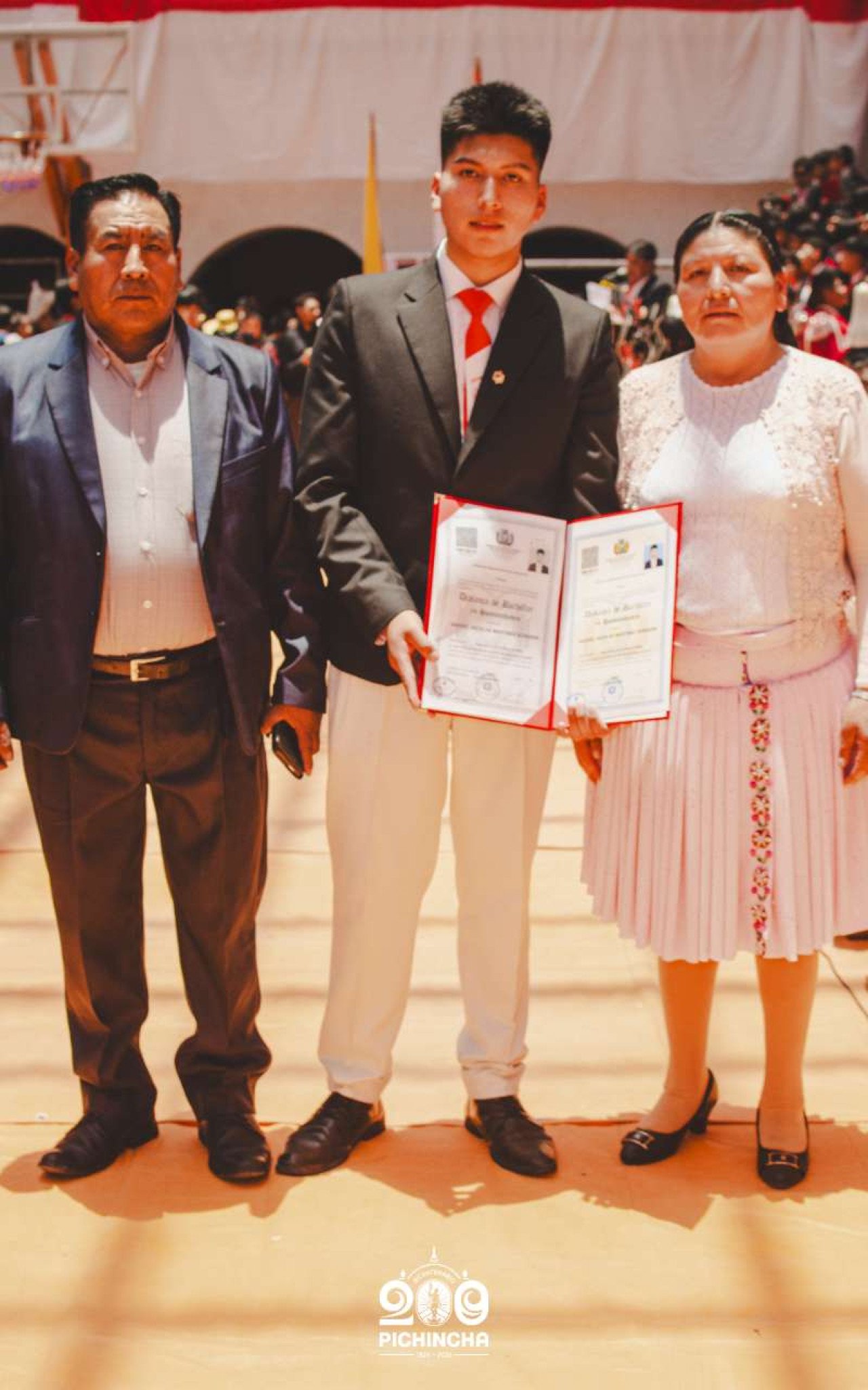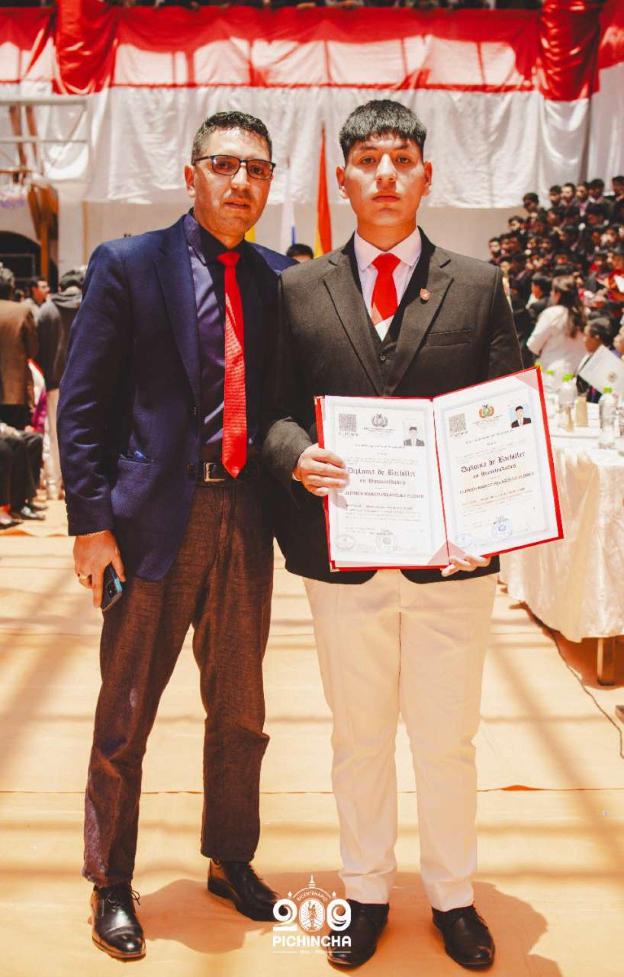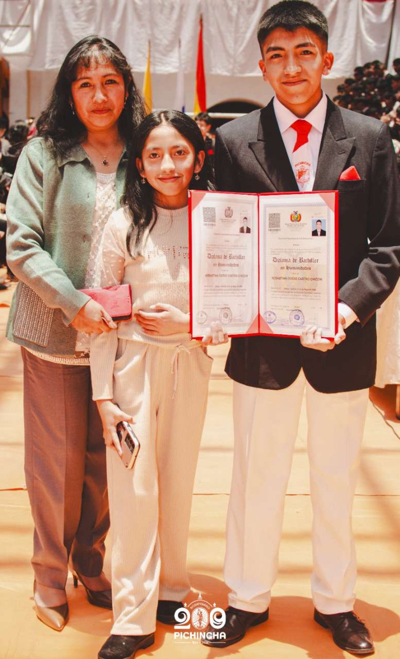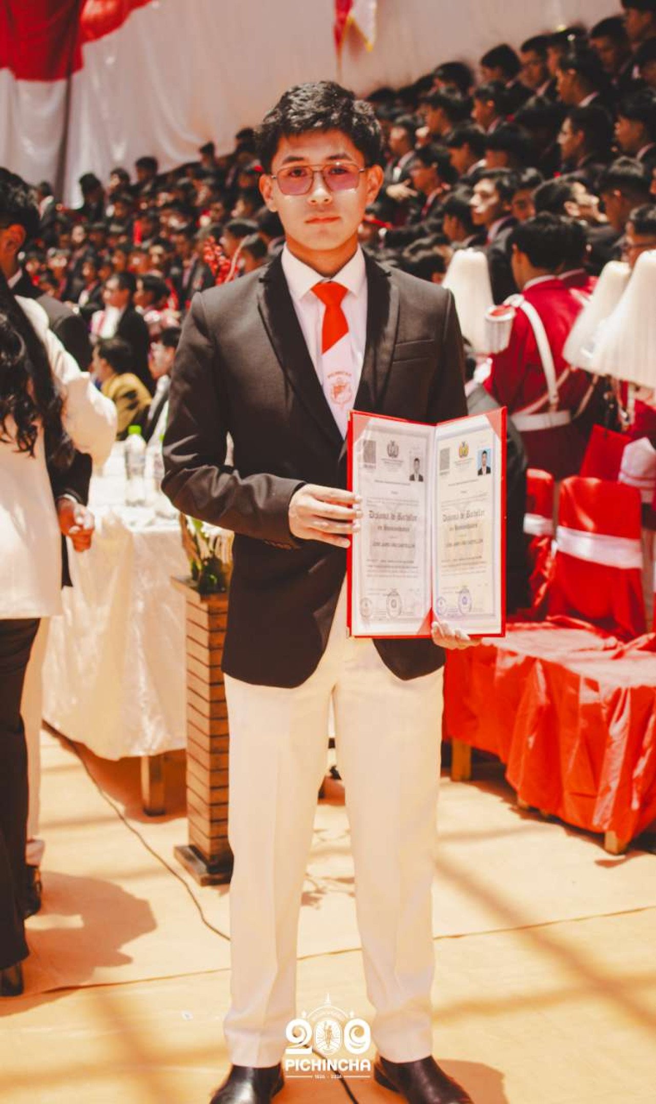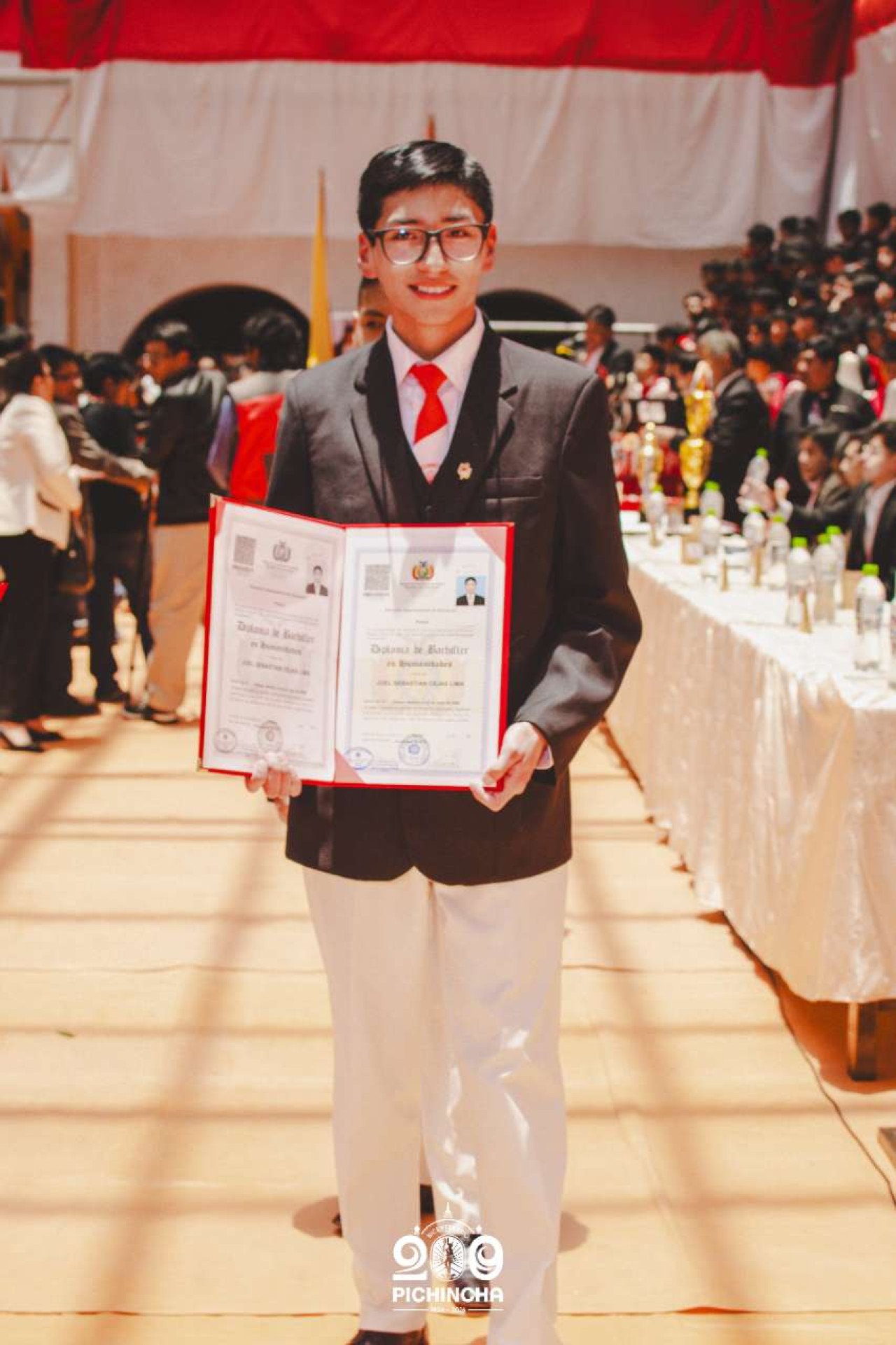 El Colegio Nacional Pichincha presenta las im谩genes de una jornada hist贸rica. Una nueva generaci贸n de bachilleres parte llevando el rojo y blanco y el lema "Constancia y Trabajo" en el coraz贸n.