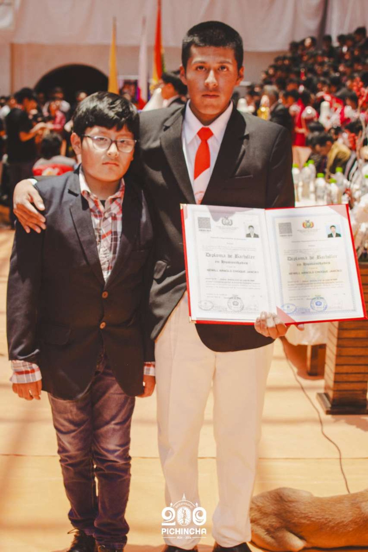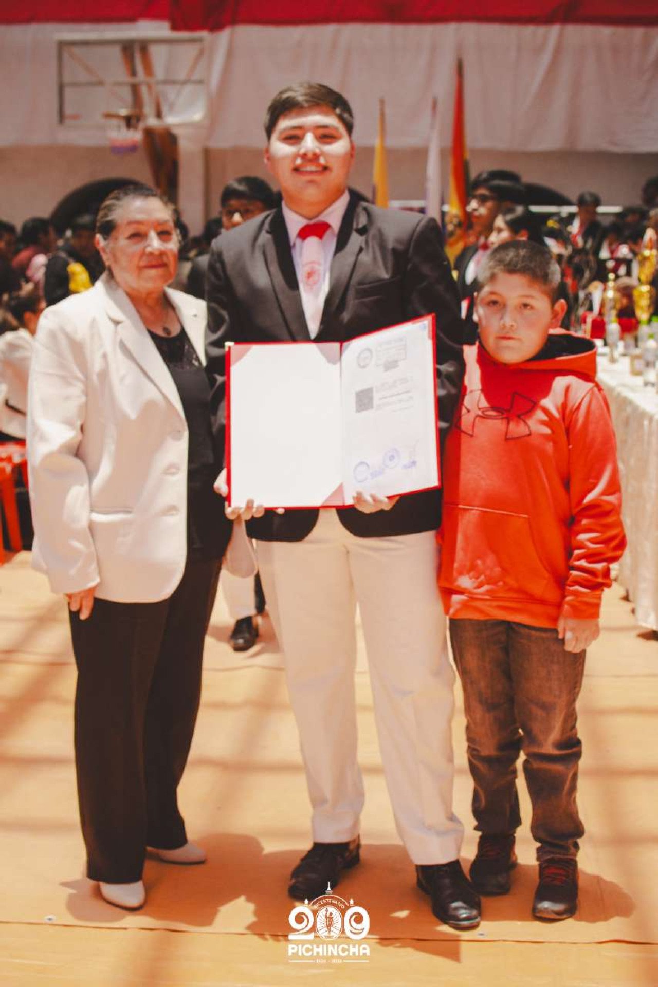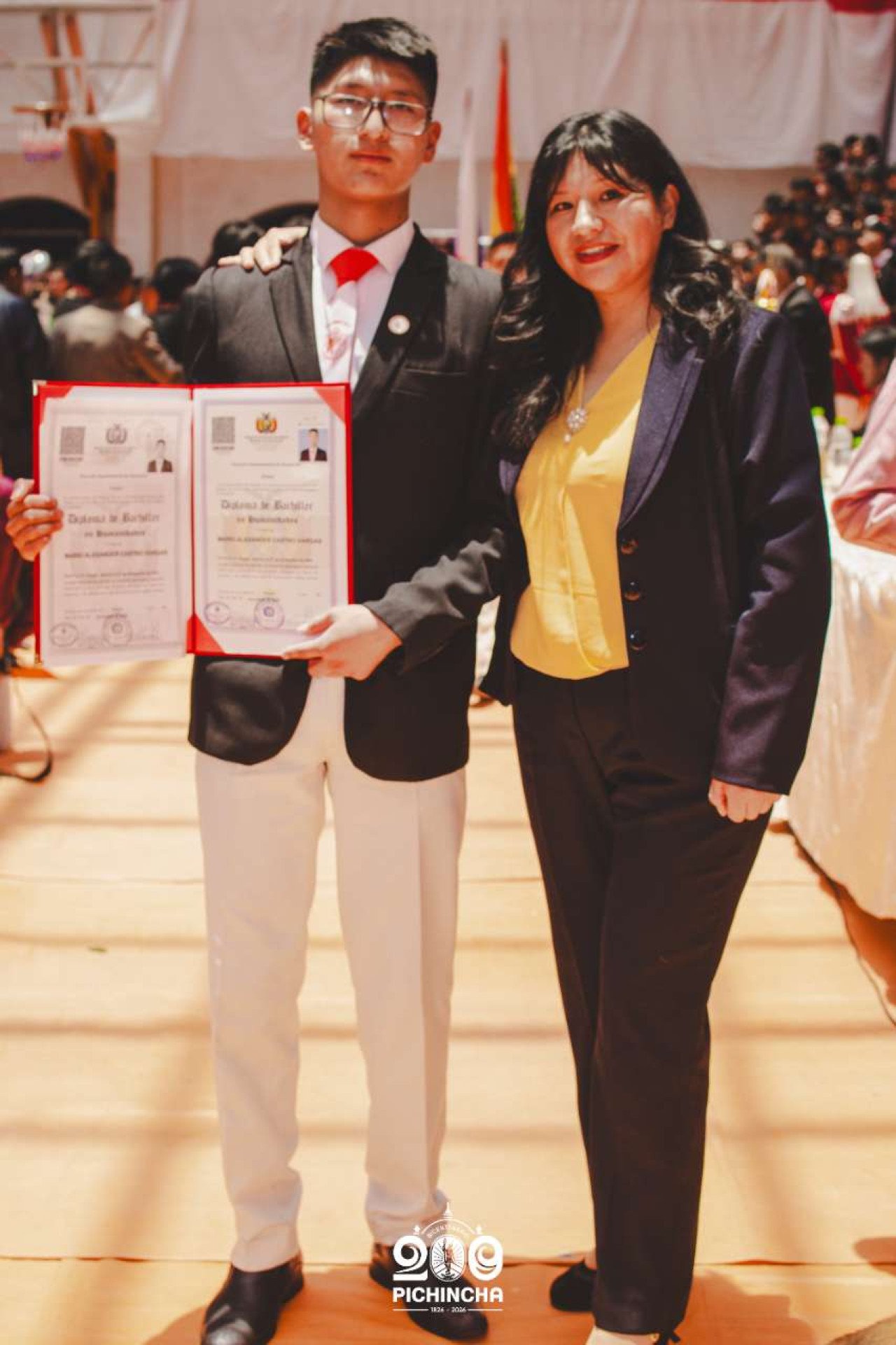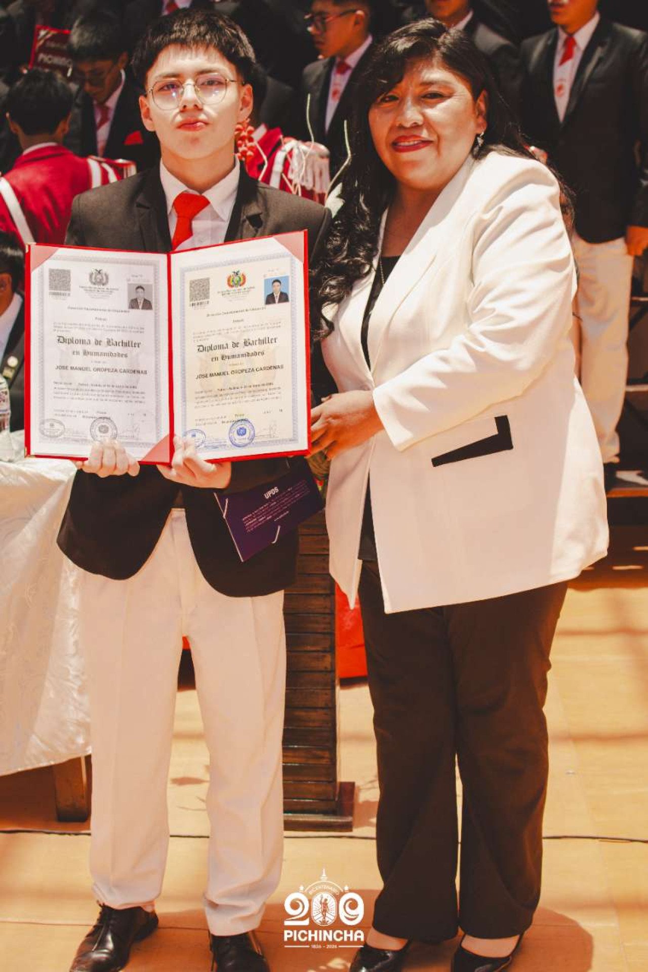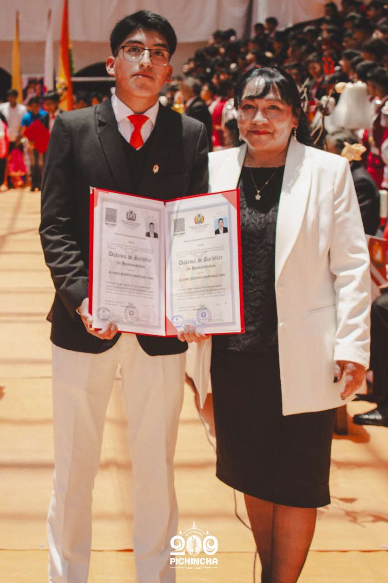 El Colegio Nacional Pichincha presenta las im谩genes de una jornada hist贸rica. Una nueva generaci贸n de bachilleres parte llevando el rojo y blanco y el lema "Constancia y Trabajo" en el coraz贸n.